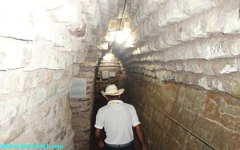 El proceso de investigación arqueológica bajo tierra requiere obligadamente el uso de trincheras, excavación de tuneles y algunas veces, desmonte de estructuras. Debe entenderce en consecuencia, que estos tuneles que observa el visitante son una realización reciente, efectuada para facilitar la labor de investigación y no son un producto cultural de los mayas.