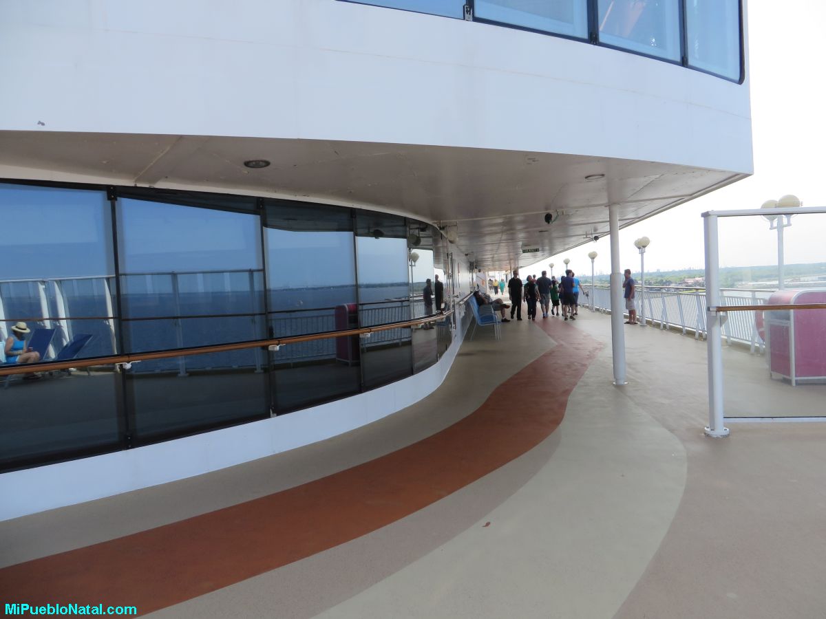 Personas divirtiéndose nadando en las albercas mientras otros disfrutan de la comida y bebidas bajo el sol. Otros caminan hacia varios lados como si para descubrir en cada rincón todo lo que este buque ofrece al turista. La música retumba por todos lados mientras comida exquisita está disponible hasta reventar.