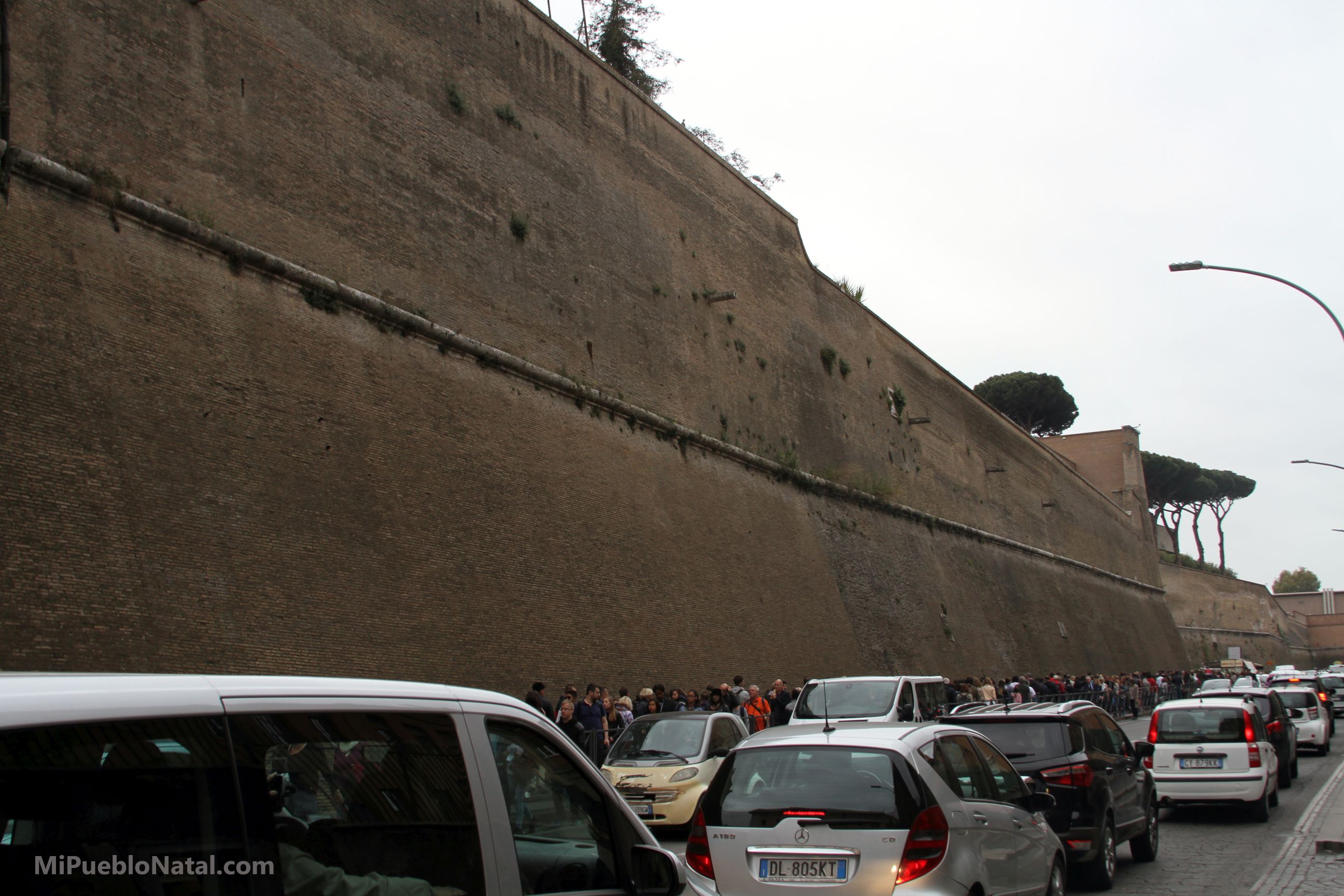Muralla del vaticano. Como pueden ver, la linea de espera para poder entrar es larga. Y esta es solo la linea de los que van en un tour. Hay otra larga linea en el lado opuesto de las personas que van solas al museo.