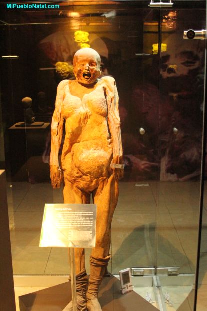 Six month old fetus. Originally this small mummified body was exhibited in the arms of its mother sharing the same showcase. It's size barely eight inches corresponds approximately to that of a fetus five to six months old (gestational age). His death was a consequence of his mother's death.